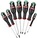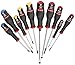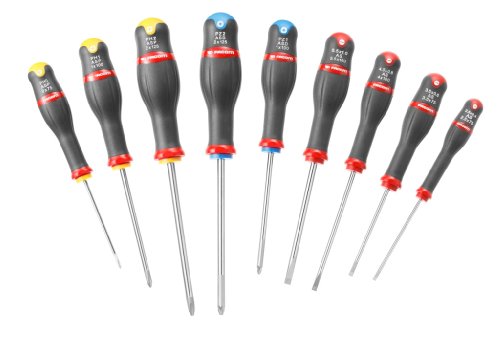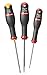 COFFRET DE 9 TOURNEVIS 4 tournevis pour vis a fente : Dim. 2,5x75 - 3,5x75 - 4x100 - 5,5x100 3 tournevis a empreinte Phillips® : Dim. 0x75 - 1x100 - 2x125 2 tournevis a empreinte Pozidriv® : Dim. 1x100 - 2x125
