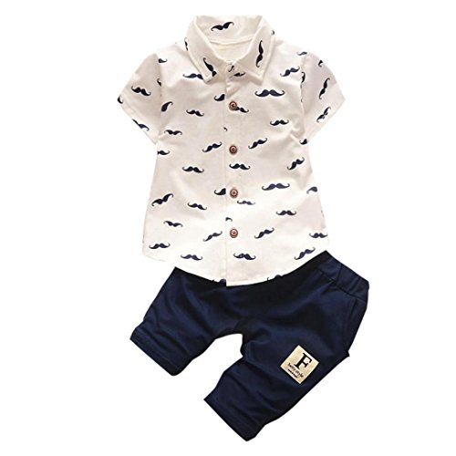 Famille Bébé Garçons Barbe T-Shirt Tops + Pantalons Courts Pantalons, Vêtements de Mode (18-24Mois, Blanc)