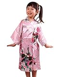 Fille Satin Peacock et Kimono Robe Fleurs...