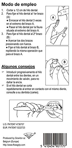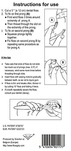 - FlossGrip réduit considérablement la consommation de fil dentaire: 12 cm de fil sont suffisants. Après seulement quelques mois, l'économie sur le fil vous remboursera le prix de votre FlossGrip.