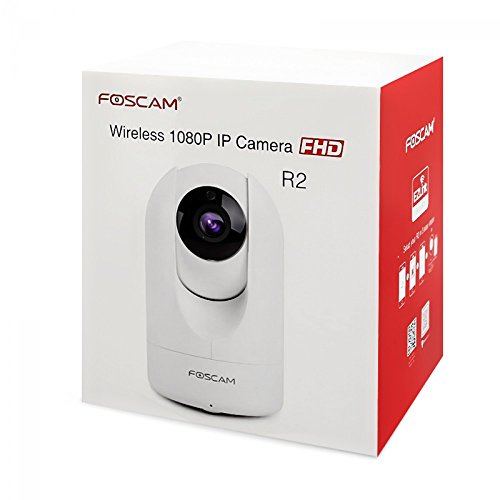 La caméra IP compacte Foscam R2 dispose d'une résolution de 2 méga-pixels (1920 x 1080 pixels). Elle est équipée d'une lentille de 2.8 mm vous offrant une qualité d'image inégalée. Le champ de vision est de 110°. Motorisée, la rotation peut se faire à distance sur un angle vertical de 120° et horizontal de 300°. Cette caméra dispose d'un mode nuit, constitué de LEDs infrarouge pour améliorer la luminosité dans l'obscurité. Votre intérieur reste ainsi visible même de nuit. De jour, le filtre IR-Cut se met en marche par forte luminosité et permet d'améliorer l'image et le respect des couleurs. Ce système se désactive à la tombée de la nuit pour laisser la place au mode nuit. Elle est dotée d'une fonction « détection de mouvement » qui vous envoie une notification par mail. Celui-ci contient des prises de vue de la caméra. Les caméras Foscam s'installent très simplement depuis un ordinateur ou un téléphone. Elles sont compatibles avec l'ensemble des box (ADSL, fibre, câble & satellite) et opérateurs internet du marché. Le serveur web intégré permet de s'y connecter depuis tout lieu pour visionner les images : en déplacement, sur votre lieu de travail ou en vacances. La technologie P2P incluse permet un paramétrage très rapide : il n'est plus nécessaire de se connecter à votre routeur pour effectuer une modification des ports. Lors de l'installation, un nom de domaine gratuit est crée (de la forme http://ab1234.myfoscam.org:80) afin d'accéder à la caméra depuis n'importe quel plate-forme connectée à internet (ordinateur fixe, portable, smartphone ou tablette). Cette caméra allie connexion Wifi (802.11 b/g/n) et connexion par câble RJ45 fourni.
