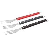 RUECAB Fourchette Barbecue Manche Bois, Noir/rouge/gris,5...