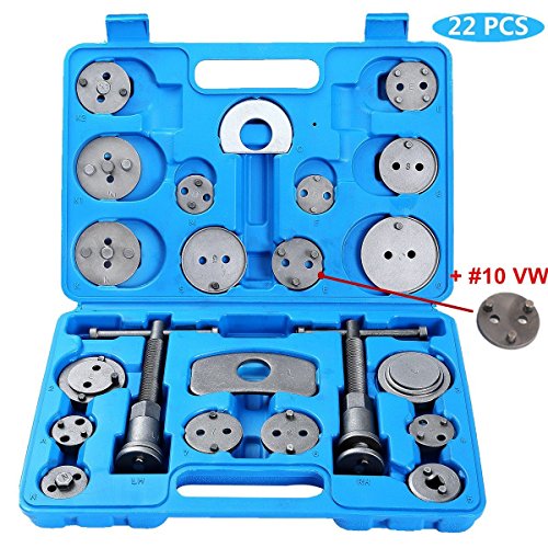 - Les outils de filetage droit et gauche sont inclus dans le kit. Les 17 plaques adaptateurs du piston de frein permettent une utilisation facile pour repousser les pistons avec peu d'effort sur presque toutes les voitures. Ce kit vous permet de repousser les pistons de frein qui doivent être tournés et appuyés simultanément, en protégeant l'enveloppe en même temps.