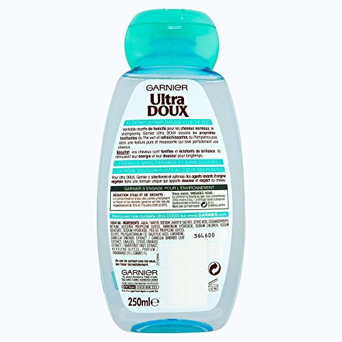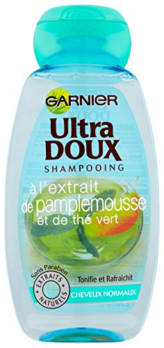 - Véritable recette de tonicité pour les cheveux normaux, le shampooing Garnier Ultra Doux associe les propriétés tonifiantes du Thé vert et rafraichissantes du Pamplemousse, dans une texture pure et moussante qui lave parfaitement vos cheveux.