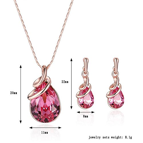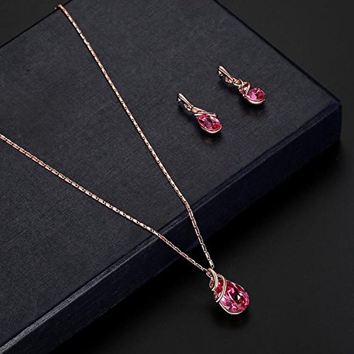 Hosaire Bijoux Ensemble Collier Pendentif Boucles d'oreilles Forme de Cristal Rouge Modèle Accessoires de Bijoux Pour Femme et Fille Soirée de Mariage Saint-Valentin Fête des Mères de Noël Cadeaux d'anniversaire