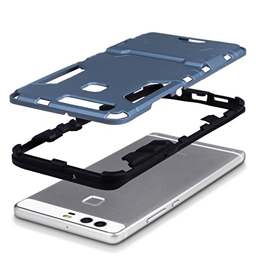 Huawei P9 Case, Terrapin Double Couche Étui Rigide avec Fonction Stand pour Huawei P9 Coque - Bleu Foncé