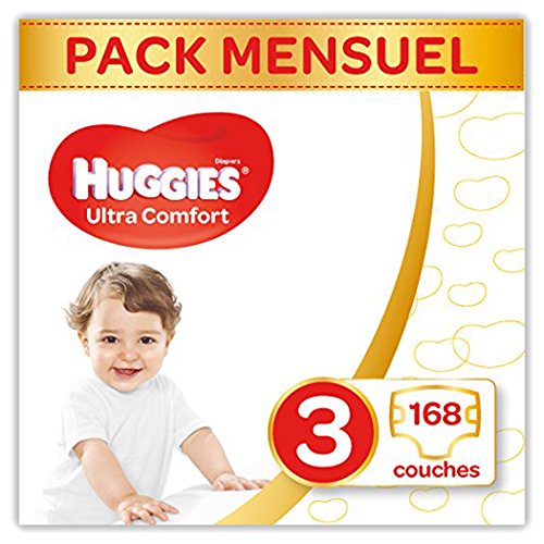 Huggies Ultra Comfort - Couches Bébé unisexe - Taille 3 (4-9 kg) x168 Couches - Pack 1 mois de Consommation