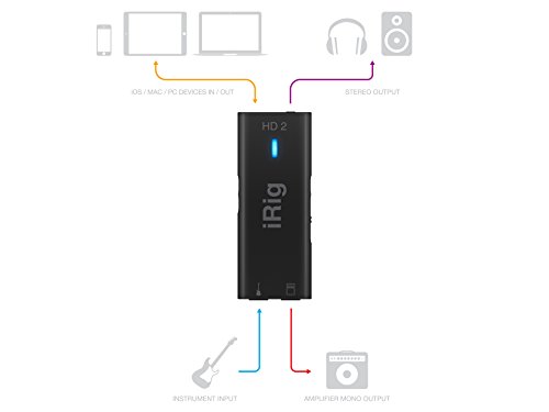 iRig HD-2 constitue l?évolution naturelle de l?iRig HD, l?interface numérique pour guitare la plus vendue au monde, et représente le nouveau chapitre de la révolution mobile de la musique, en permettant à tous les musiciens d?enregistrer leurs idées sur iPhone, iPad, Mac et PC en qualité 24-bits/96 kHz ou de pratiquer leurs instruments en déplacement grâce à des fonctionnalités simples et intuitives.Comme son prédécesseur, iRig HD-2 comprend une entrée instrument jack 6,35 mm et un contrôle précis du gain pour une qualité sonore extrême quand on utilise différents instruments.iRig HD-2 présente une nouvelle prise casque avec contrôle du volume, vous pourrez ainsi continuer à utiliser votre casque habituel si vous l?utilisez avec le nouvel iPhone 7, et une sortie jack 6,35 mm qui permet de brancher un amplificateur ou bien un système de sonorisation. L?interrupteur THRU/FX permet d?envoyer le signal « traité » ou direct à la sortie jack ? ce qui est très utile quand on joue live. Un support et une bande en velcro ont été inclus pour fixer solidement iRig HD-2 à un pied de micro pendant un enregistrement, en studio ou en live.iRig HD 2 inclut la version complète d?Amplitube 4, en téléchargement gratuit, pour iOS, Mac et PC.AmpliTube 4 est le logiciel qui est devenu un standard dans l?industrie musicale et qui permet d?utiliser les modélisations les plus réalistes des amplificateurs et des effets qui ont écrit l?histoire de la musique.Caractéristiques :? Conversion analogique/numérique 24-bit, 96 kHz? Entrée jack instrument 6,35 mm pour guitare, basse et autres instruments? Sortie AMP 6,35 mm avec interrupteur THRU/FX pour connecter un ampli pour guitare ou basse? Sortie casque mini-jack 3,5 mm avec contrôle du volume pour pratiquer silencieusement? Contrôle du volume précis? Support pour pied de micro et bande en velcro inclus? Inclut la version complète de AmpliTube 4 pour iOS, Mac...
