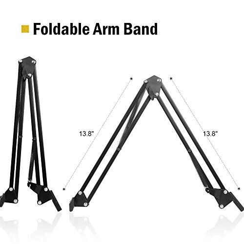 - Bande de bras pliable: Les bras réglables peuvent être repliés et faciles à transporter. Et vous permettent d'ajuster l'angle et la hauteur appropriés pour montrer votre voix parfaite.
