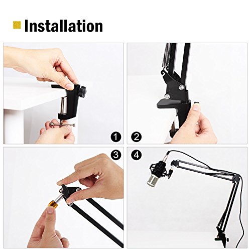- Forfaits inclus: 1 x support de bras à ciseaux de microphone, 1 x pinces de fixation de bureau, 1 x clip de microphone et 1 x 5/8 "-27 mâle à 3/8" -16 femelle fileté adaptateur de vis