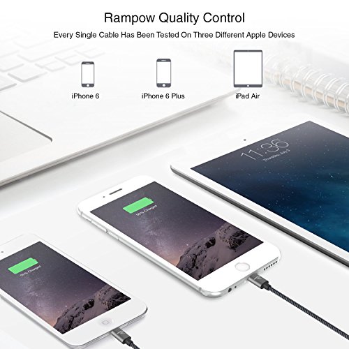 Câble iPhone Rampow® [MFI certifié Apple] Câble Lightning vers USB en Fibre de Nylon Tressé - GARANTIE À VIE - Chargeur iPhone avec Connecteur Ultra Résistant en Aluminium pour iPhone 8 / 8 Plus / 7 / 7 Plus / SE / 6s / 6s Plus / 6 / 6 Plus / 5c / 5s / 5, iPad Pro, Air, iPad mini et Des Autres - Gris Sidéral 0.2m / 20cm [Nouvelle version]