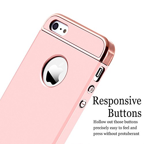 - HYBRID 3 en 1 Conception: Les cadres galvanisés supérieurs et inférieurs détachables ont vraiment l'air élégant et brillant. La conception en trois étapes rend l'iPhone SE/5S/5 facilement enlevé et installé. Les trois sections s'accrochent solidement et en toute sécurité.