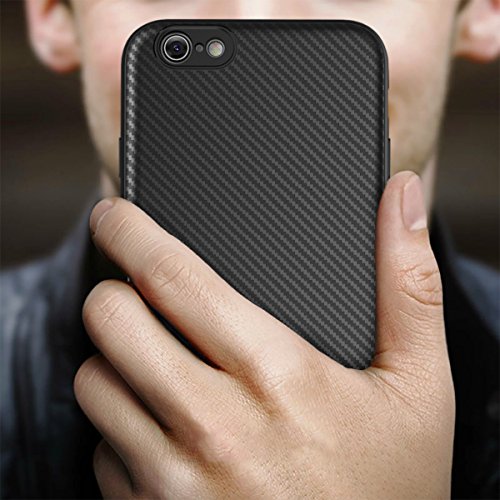 Coque iphone 6, Coque iphone 6s, J Jecent [ Fibre de Carbone] Silicone TPU Souple Bumper Case Cover de Protection Premium Non Slip Surface Housse Etui[Anti-Choc et Anti-Rayures] Coque pour iPhone 6 (2014) / iphone 6s (2015) 4.7 pouces -Noir