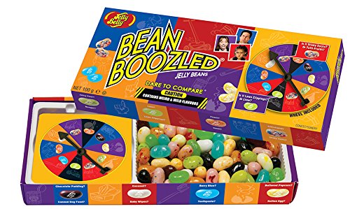 Coffret Cadeau Série Harry Potter + Jeu - Les jelly belly BeanBoozled sont issu des fameux dragées surprises de Bertie Crochue, de Harry Potter - Chaque couleur de Jelly Belly correspond à deux goûts différents : un goût classique tel que pop-corn, tutti-frutti ou noix de coco, et un goût plus "exotique" tel que dentifrice, crotte de nez ou horreur des horreurs : vomi! - Présenté sous forme de jeu, il s'agira de faire tourner la roulette pour se voir désigner une couleur à piocher...il vous restera bien entendu à prier pour ne pas tomber sur le mauvais coté de la couleur!