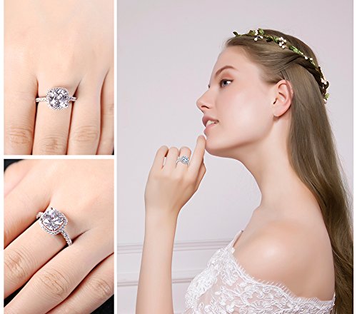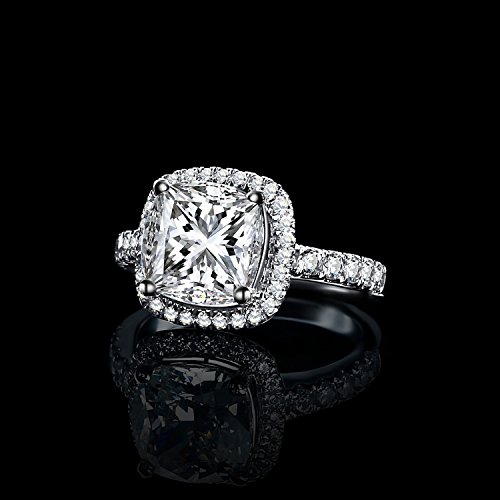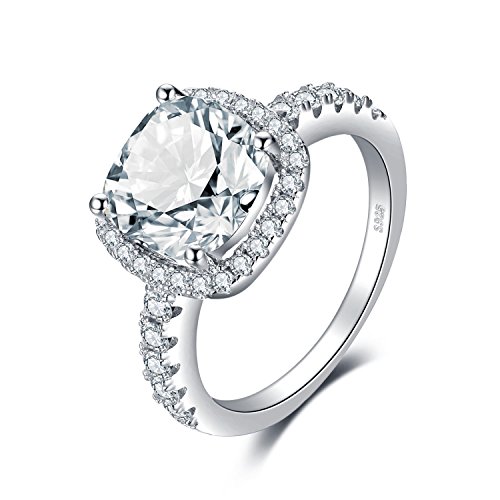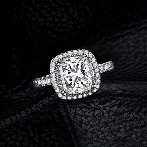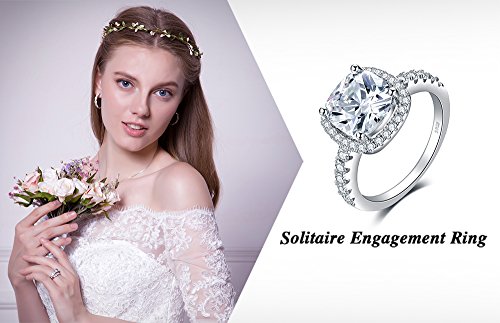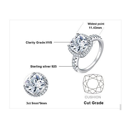 JewelryPalace Coussin 3ct Zircone Cubique Mariage Halo Solitaire Fiançailles Bague en Argent 925