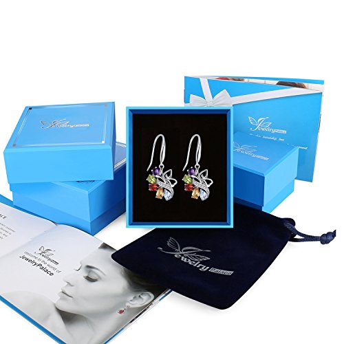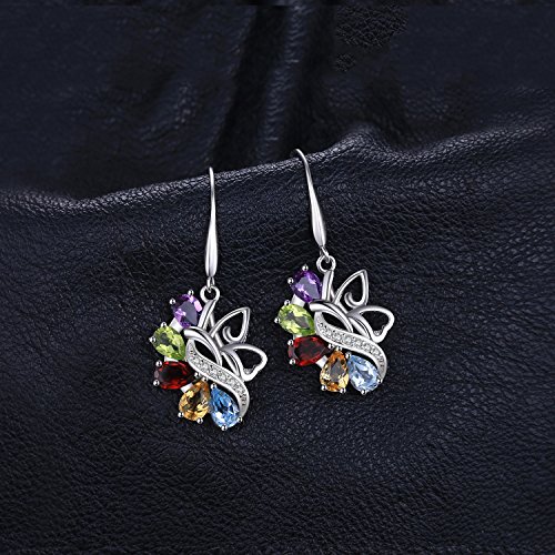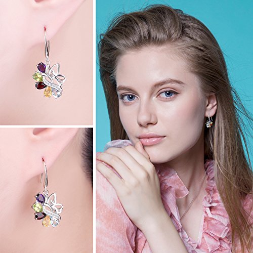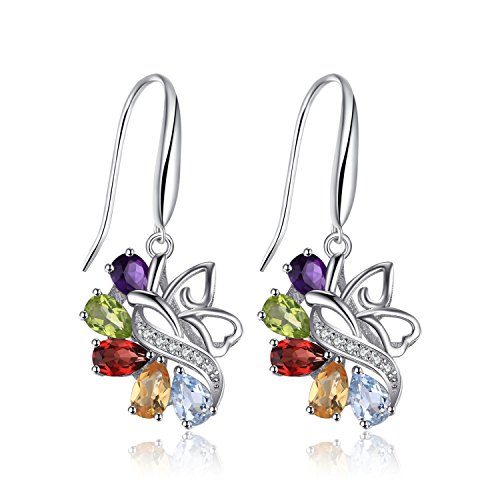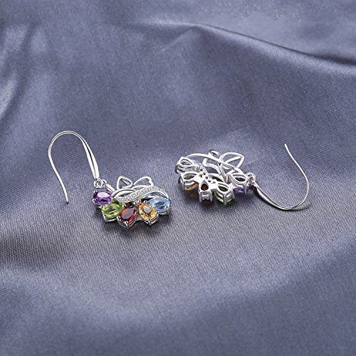 JewelryPalace 4.24ct Elégant Boucles d'Oreilles Pendantes Femme en Forme Fleur en Argent Sterling 925 en Améthyste Citrine Grenat Péridot Topaze Naturelle