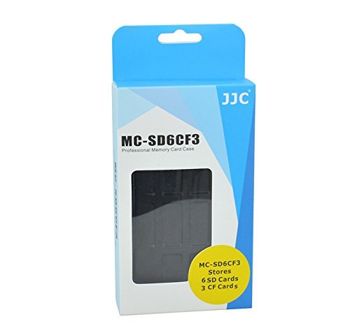 Boitier MC-SD6CF3 Robuste et étanche pour Carte Mémoire de la marque JJC. Ce modèle (MC-SD6CF3) stocke les cartes suivantes: 3x Compact flash et 6x carte SD. Boitier robuste en résine de polycarbonate avec un joint en caoutchouc résistant à l'eau.