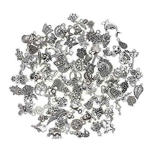 JuanYa 100 Pcs mix de broloques plaqué argent pour collier, bracelet, pendentifs bijoux DIY