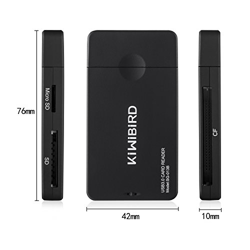 KiWiBiRD USB 3.0 (3.1 Gen 1) Lecteur de Carte Super Rapide 9-en-1 pour Cartes CF (UDMA), SDXC, SD, MMC, RS-MMC, SDHC, Micro SD, Micro SDXC, Micro SDHC [Soutient les Cartes UHS-I ] – Noir