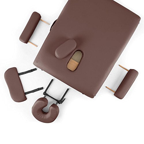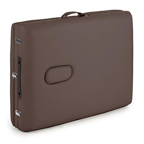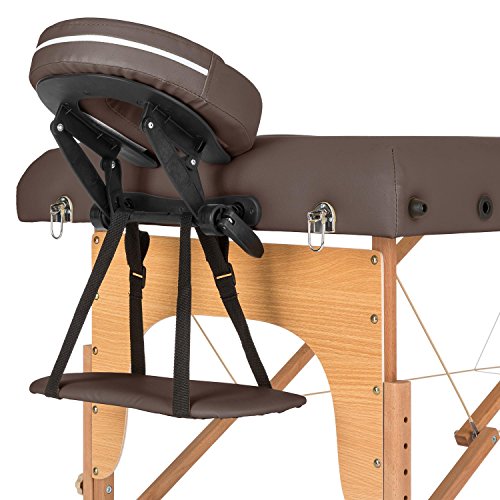 Klarfit MT 500 Table de massage pliable de 210cm avec cavité faciale (rembourrage mousse, entièrement modulable, hauteur de pieds ajustable, housse de transport) - marron