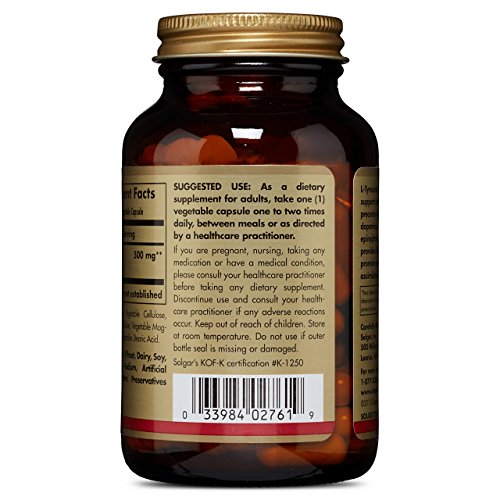 - Solgar L-Tyrosine Vegetable Capsules, 500 mg, 100 Count by Solgar