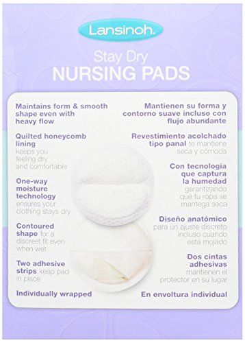 Lansinoh Disposable Nursing Pads have an ultra-thin but super-absorbent contour for a natural fit that won't show under clothing. The soft, stay-dry lining draws milk away from the skin and into the core of the pad where it is absorbed by a special polymer to prevent leakage. Featuring two non-slip adhesive tapes so that the pad stays in place, this is the only polymer style pad that keeps its shape when wet. The pads are hygienically wrapped for cleanliness and convenience - perfect to slip into your bag when out and about.