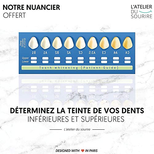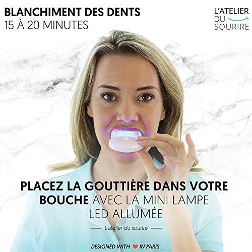 - KIT BLANCHISSEMENT DENTAIRE POUR LA MAISON: Débarrassez-vous des taches jaunes causées par le tabac, le café, le thé et le vin en 20 minutes avec le kit blanchiment dentaire complet par L'ATELIER DU SOURIRE.
