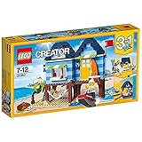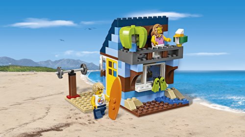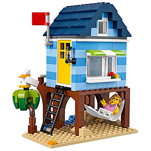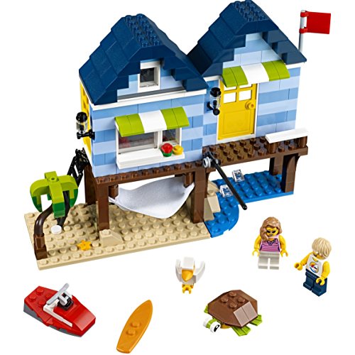 Vis des aventures estivales avec cette maison à la plage, comprenant des rayures bleues, deux grandes fenêtres avec des auvents verts et blancs et une porte jaune, plus un intérieur détaillé avec un fauteuil, un aquarium et un ventilateur au plafond, et des détails extérieurs comprenant un hamac, un palmier et une zone de plage et de mer. Inclut aussi un jet-ski à construire. Transforme ce modèle LEGO Creator 3-en-1 en magasin de place ou en port. Inclut deux figurines, plus une tortue de mer et une mouette à construire.. . - Inclut deux figurines, plus une tortue de mer et une mouette à construire.. - Comprend une maison de plage surélevée avec un balcon, un drapeau, un aquarium, une chaise, un ventilateur, une échelle, un hamac, une zone de plage et de mer avec une étoile de mer et un palmier, plus un jet-ski.. - Déplie le modèle pour accéder à l'intérieur détaillé.. - Essaie de surfer ou pêche un peu depuis le balcon.. - Va faire un tour avec le jet-ski !. - Les accessoires incluent une canne à pêche, une planche de surf et une radio.. - Cet ensemble comprend plus de 270 pièces et offre une expérience de construction et de jeu adaptée aux enfants de 7 à 12 ans.. - Modèle 3-en-1 : se transforme en magasin de plage ou en port.. - La maison de plage (dépliée) mesure plus de 18 cm de haut, 27 cm de large et 11 cm de profondeur.. - Le magasin de plage mesure plus de 11 cm de haut, 23 cm de large et 8 cm de profondeur.. - Le port mesure plus de 16 cm de haut, 14 cm de large et 9 cm de profondeur.. . 275 pièces. 2 minifigurines