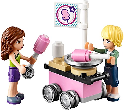Mange ensuite une délicieuse barbe à papa achetée au chariot à côté.Inclut les mini-poupées Olivia et Ben en tenues d'été.Comprend une piste pour auto-tamponneuses avec 2 autos-tamponneuses avec des drapeaux, des marches, une porte qui s'ouvre avec des haut-parleurs rotatifs, une attraction shaker avec 3 sièges, une barre de sécurité qui s'ouvre et une fonction de balancement et de bascule, un guichet avec des marches et une fenêtre qui s'ouvre, et un chariot à barbe à papa avec des roues qui tournent.Les accessoires incluent un ticket, un billet, une pièce, un lecteur MP3, une machine à barbe à papa et 3 bâtons de barbe à papa.Dirige les autos-tamponneuses avec leurs hauts drapeaux pour les faire rentrer les unes dans les autres.Fais tourner la manette pour que le shaker bascule et se balance de plus en plus haut.Achète une délicieuse barbe à papa au chariot roulant.Cet ensemble offre une expérience de construction adaptée aux enfants de 8 à 12 ans.La piste des autos-tamponneuses mesure plus de 10 cm de haut, 14 cm de large et 12 cm de profondeur.Le shaker mesure plus de 10 cm de haut, 12 cm de large et 13 cm de profondeur.Le guichet mesure plus de 11 cm de haut, 6 cm de large et 4 cm de profondeur.Le chariot à barbe à papa mesure plus de 4 cm de long, 3 cm de large et moins de 2 cm de haut.À combiner avec l'arcade du parc d'attractions (41127*), le manège volant du parc d'attractions (41128*) et la camionnette à hot-dogs du