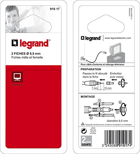 Legrand LEG91017 Fiches TV coaxiales normalisées 1 mâle + 1 femelle Diamètre 9,52 mm