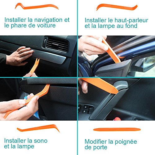 - 4 Outils de retrait et 1 extracteur peuvent démonter panneau de porte ou sono, etc ; Assurer la démontage intacte des pièces dans la voiture autant que possible