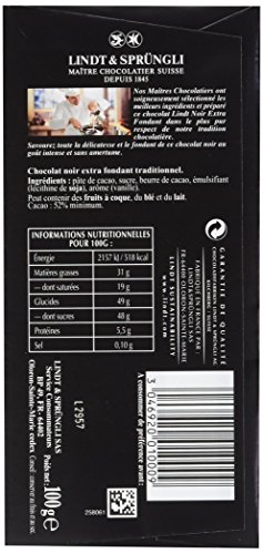 Lindt Recette Originale Noir Extra Fondant 3 x 100 g - Lot de 2