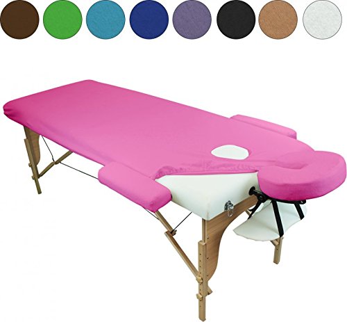 - En tissu éponge 100% coton, la Housse de table de massage Vivezen est d'une grande qualité pour l'hygiène et le confort ! Avec ses bordures en élastique, il est très facile de l'enfiler ou de l'enlever. Et une fois posée, le maintien de la housse est assuré durant toute la séance.La housse se décline en 4 pièces (la table, la têtière et les 2 accoudoirs) et s'adapte aux tables de massage allant de 175 cm à 190 cm en longueur, et de 65 cm à 80 cm en largeur.