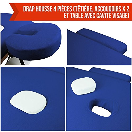 - Nombre de pièces : 4 (Table, têtière et accoudoirs x 2) / Bords : Élastique (pour une meilleure tenue) / Cavité visage : Avec