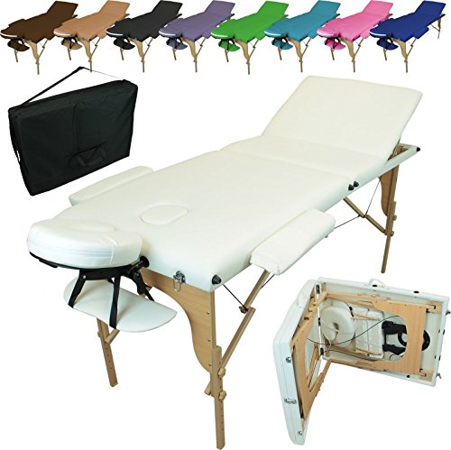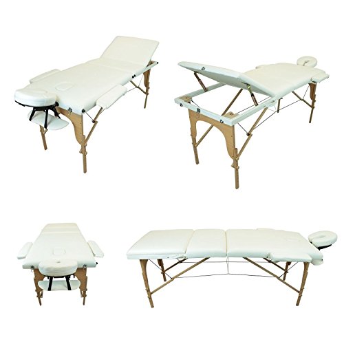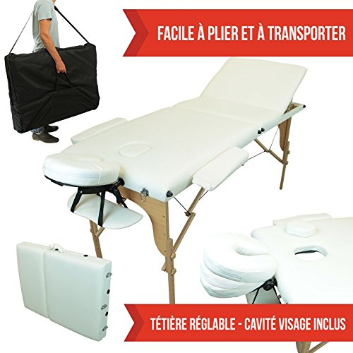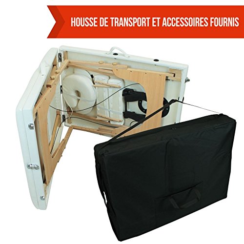 Linxor France ® Table de massage pliante 3 zones en bois avec panneau Reiki + accessoires et housse de transport, Blanc