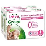 Love & Green - Couches Bébé Hypoallergéniques 0% - Taille 1 (2-5 kg) - Lot de 2 x 23 couches (46 couches)