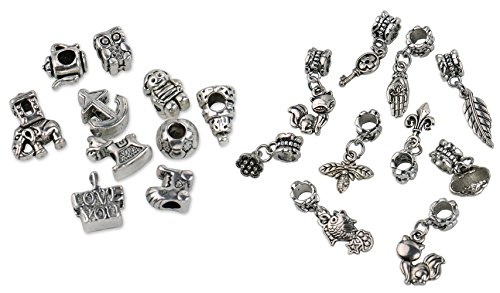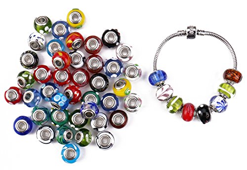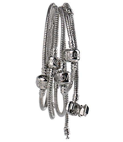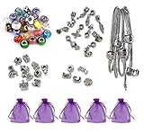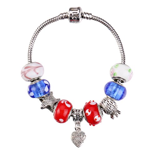 luxbon Antique Argent Bracelet à breloques Cadeau Set de 5 Bracelets, 25 Verre de Murano Beads, 10, 10 pendentifs, 5 clip fermoirs, 5 Pochette en organza DIY Bracelet Epingles Idéal comme cadeau
