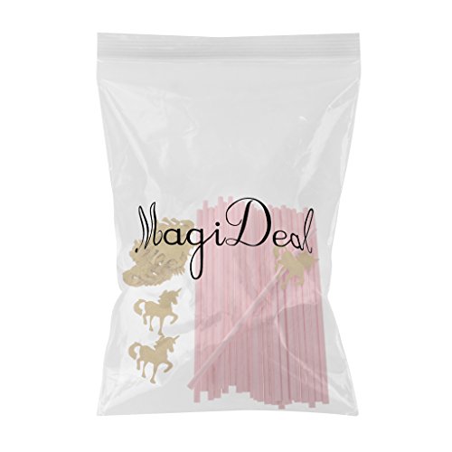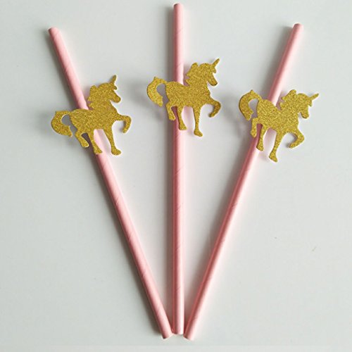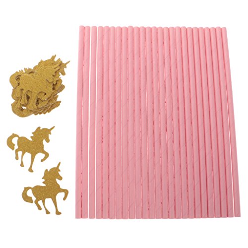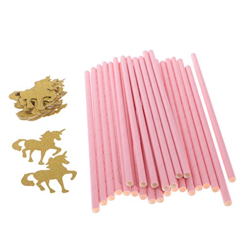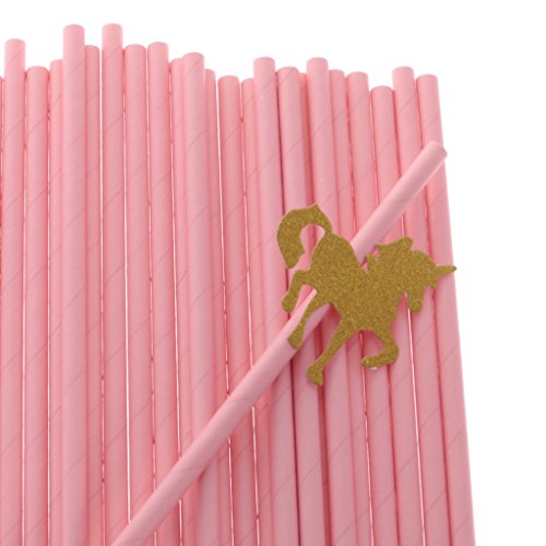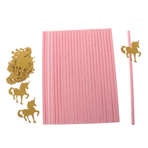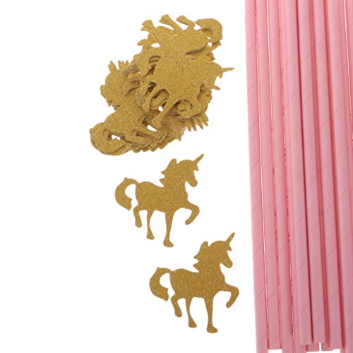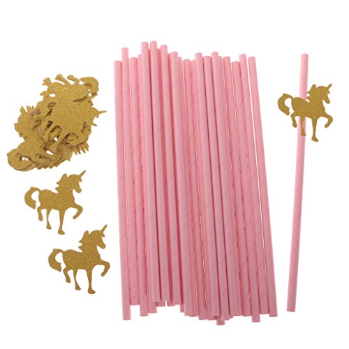 MagiDeal 25pcs Pailles Papier Rose avec Ornement Licorne en Paillette Doré pour Anniversaire Enfant
