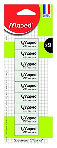 MAPED Trousse de 9 Gommes Technic 300 Gomme plastique avec formulation nouvelle génération pour une efficacité optimale - Mini format idéal pour la trousse - Cellophane de protection - Sans phtalates