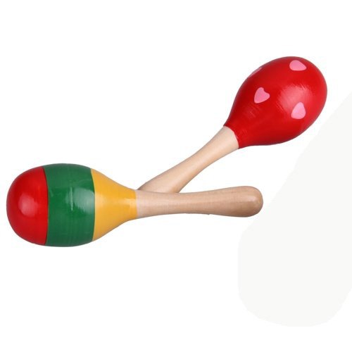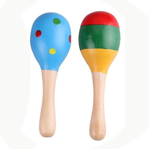2 X Maracas Bois Jouet Instrument Musical Pour Enfant