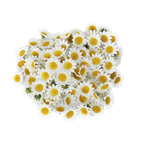 AKORD - Lot de 100 Têtes de fleurs artificielles blanches Gerbera Daisy pour fête de mariage, bricolage. Plastique.