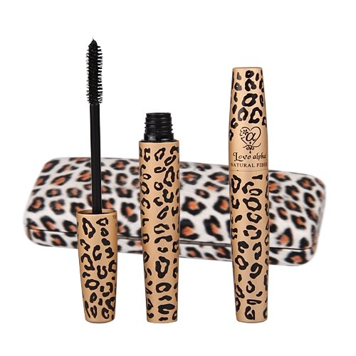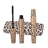 2 x Mascara Brosse Maquillage Extension Cils Noir + Etui en Léopard