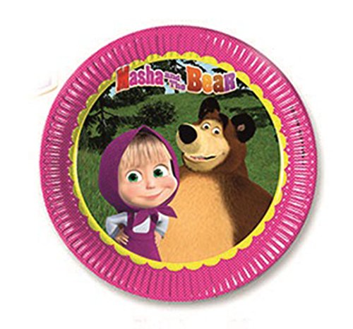 - 8 assiettes Masha Michka en carton d'environ 23cm de diamètre idéal pour y disposer votre gouter, sandwichs, chips, snacks etc...