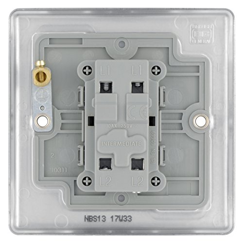 Masterplug NBS13 Interrupteur intermédiaire de lampe en acier brossé 1 module 10 A