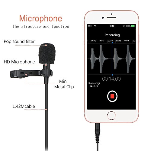- Micro cravate de longueur de câble de 4.92ft, ils peuvent tenir votre téléphone et simplement passer le microphone en le parlant dans le voisinage général de l'autre placement, qui capturent et enregistrent clairement leurs mots.