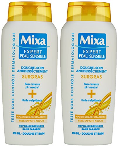 Mixa Expert Peau Sensible - Douche-Soin Antidessèchement Surgras à l'Huile Relipidante - 400 ml - Lot de 2