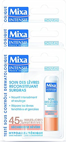Mixa Intensif Peaux Sèches - Soin des Lèvres Reconstituant Surgras - 4.7 ml - Lot de 3