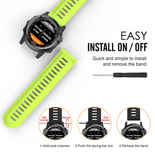 MoKo Garmin Fenix 3 Bracelet, Bracelet de Remplacement Flexible en silicone avec des outils pour Garmin Fenix 3 / Fenix 3 HR / Fenix 5X (pas Compatible de Fenix 5 )Smart Watch, Vert