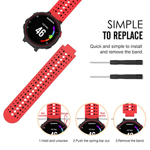 MoKo Garmin Forerunner 235 Smartwatch bracelet, Watch Band flexible en silicone avec des outils pour Forerunner 235/220/230/620/630/735 Montre de Running GPS avec Cardio au Poignet, Rouge