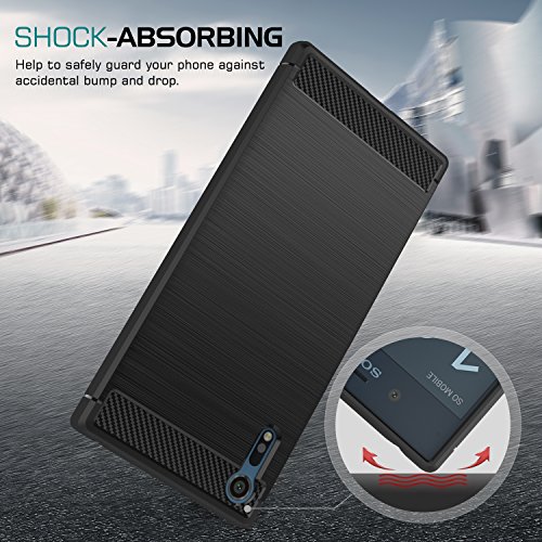 MoKo Sony Xperia XZ / XZs Coque Étui de Protection - Housse en Prémium Fibre de Carbone Ultra-Léger, Caoutchouc TPU Souple Anti-Chocs pour Sony Xperia XZ (2016) / XZs (2017) 5.2 pouces, Noir